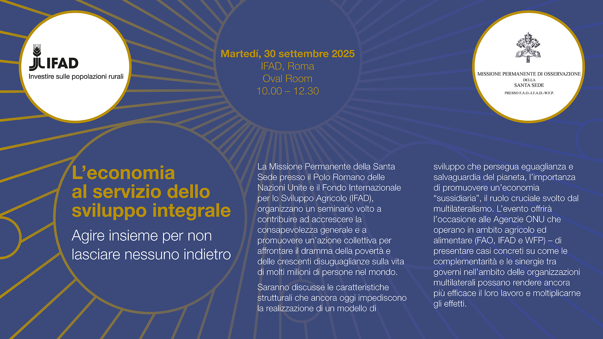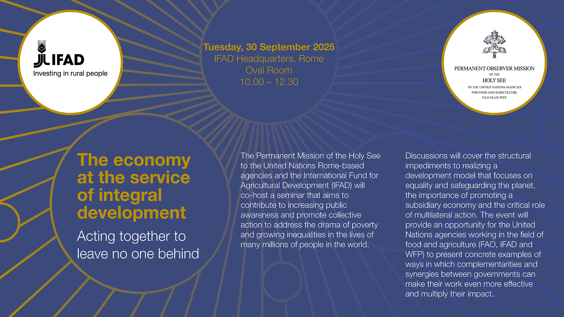 Development (IFAD) will jointly host a seminar entitled The Economy at the Service of Integral Development - Acting Together to Leave No One Behind.